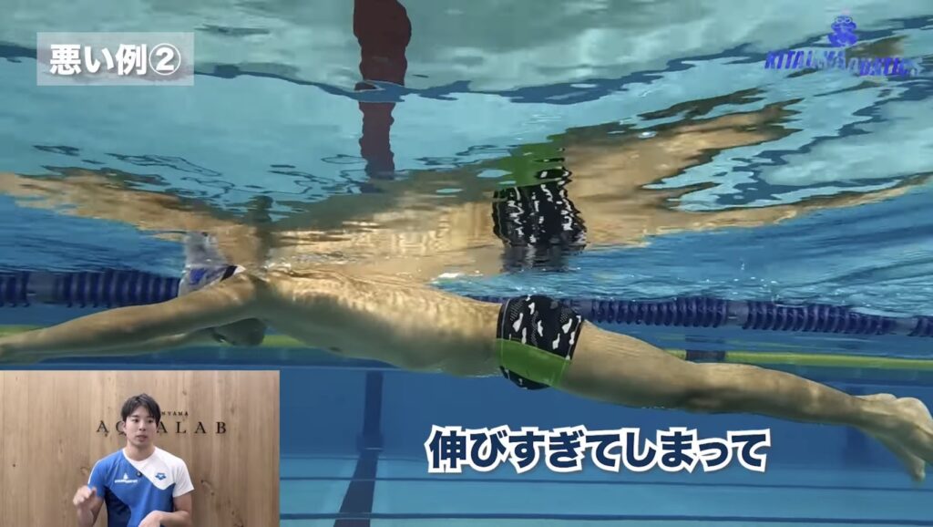 タイミングが遅くれて伸びすぎてしまう泳ぎにならないように