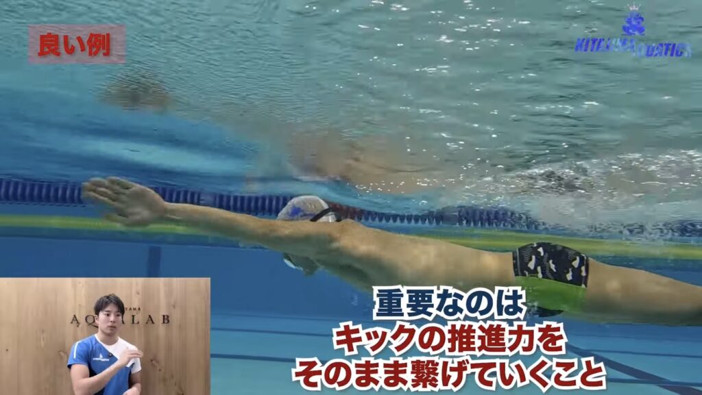 キックの推進力をそのまま繋げて泳ぐ