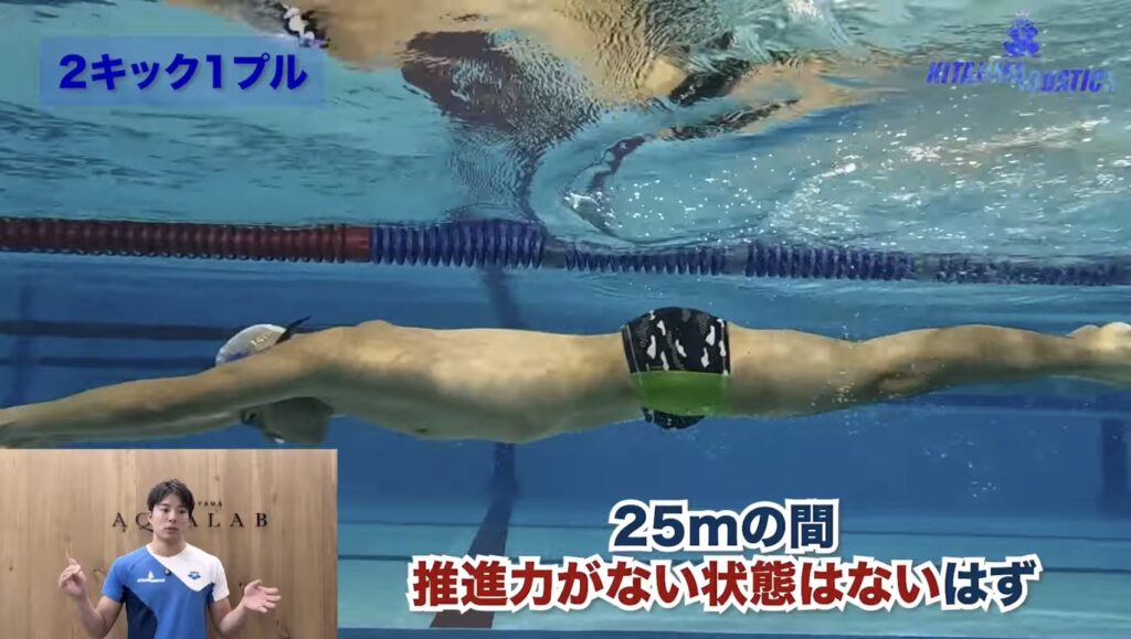 25m泳いでいる間に推進力がなくなることがない状態で泳ぎ続けることができるはずです!