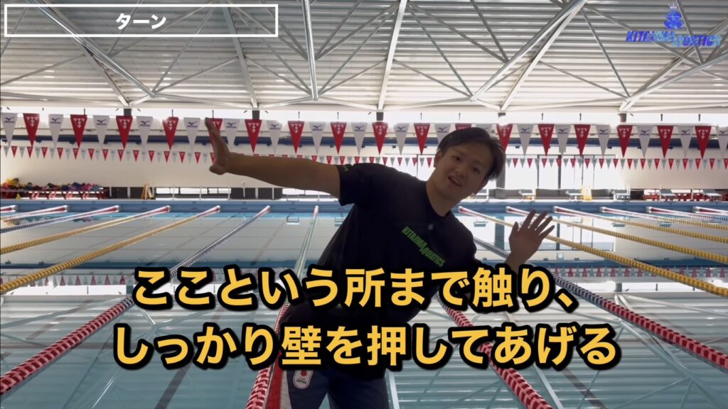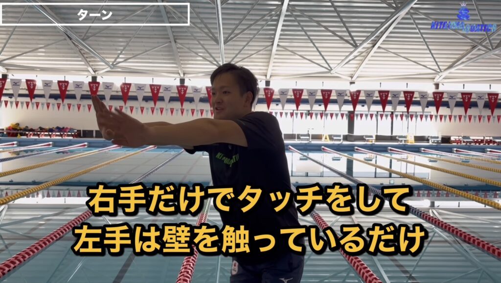 関選手がタッチターンで意識しているポイントは左右の手の使い方